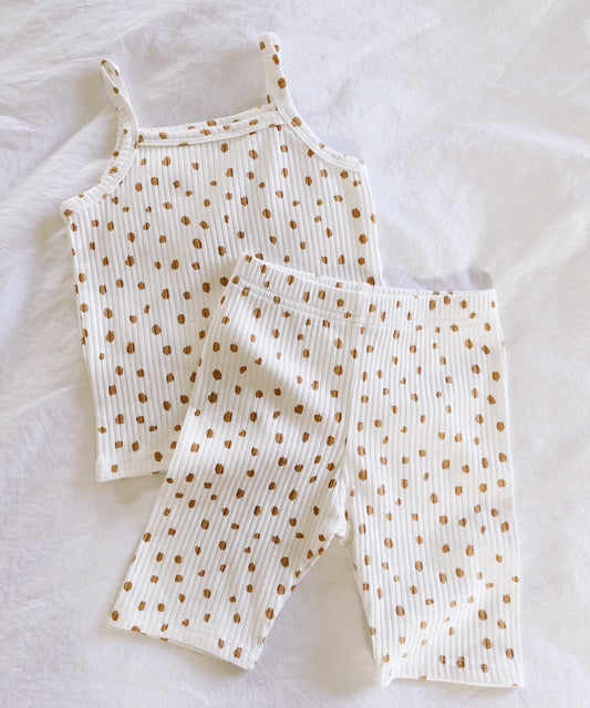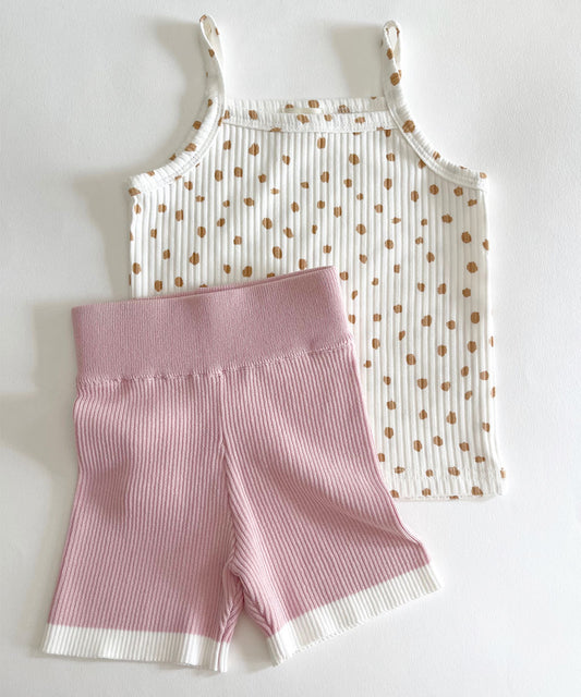 Leppard Tank Top & Rose Knit Shorts Set
