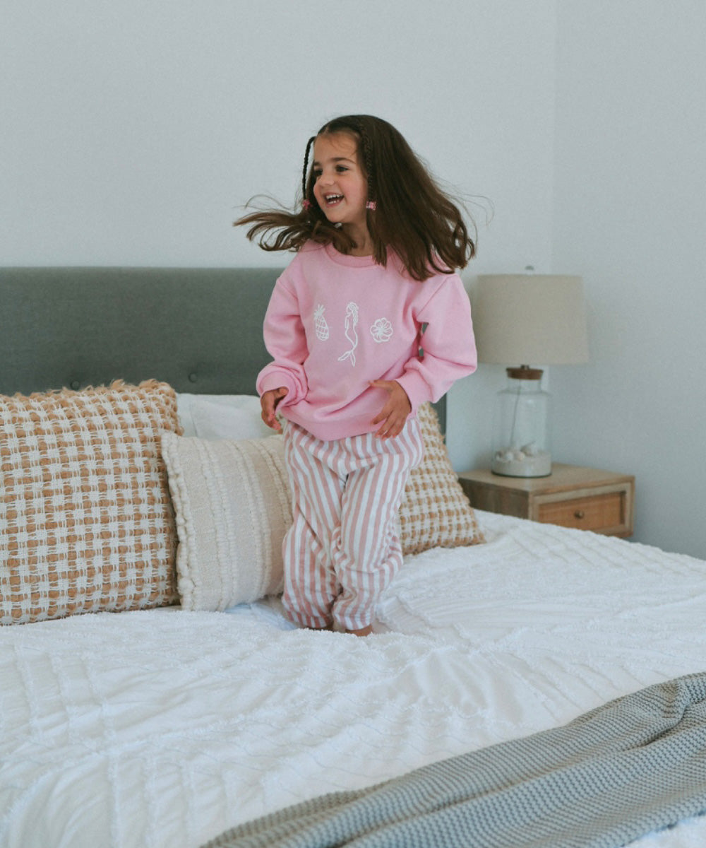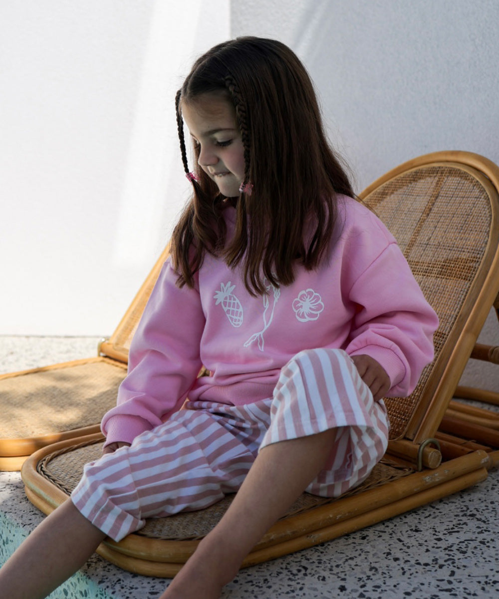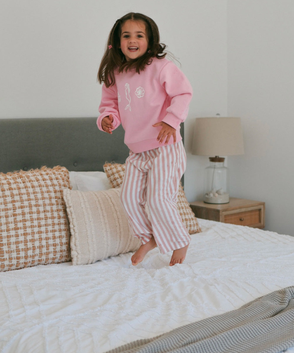 We've brought our super cute minimal mermaid graphic to a beautiful orchid pink jumper, the perfect seasonal piece to add to your little one's wardrobe. Made from a light french terry cotton, layer it up for the cooler months now and light enough to wear into spring.